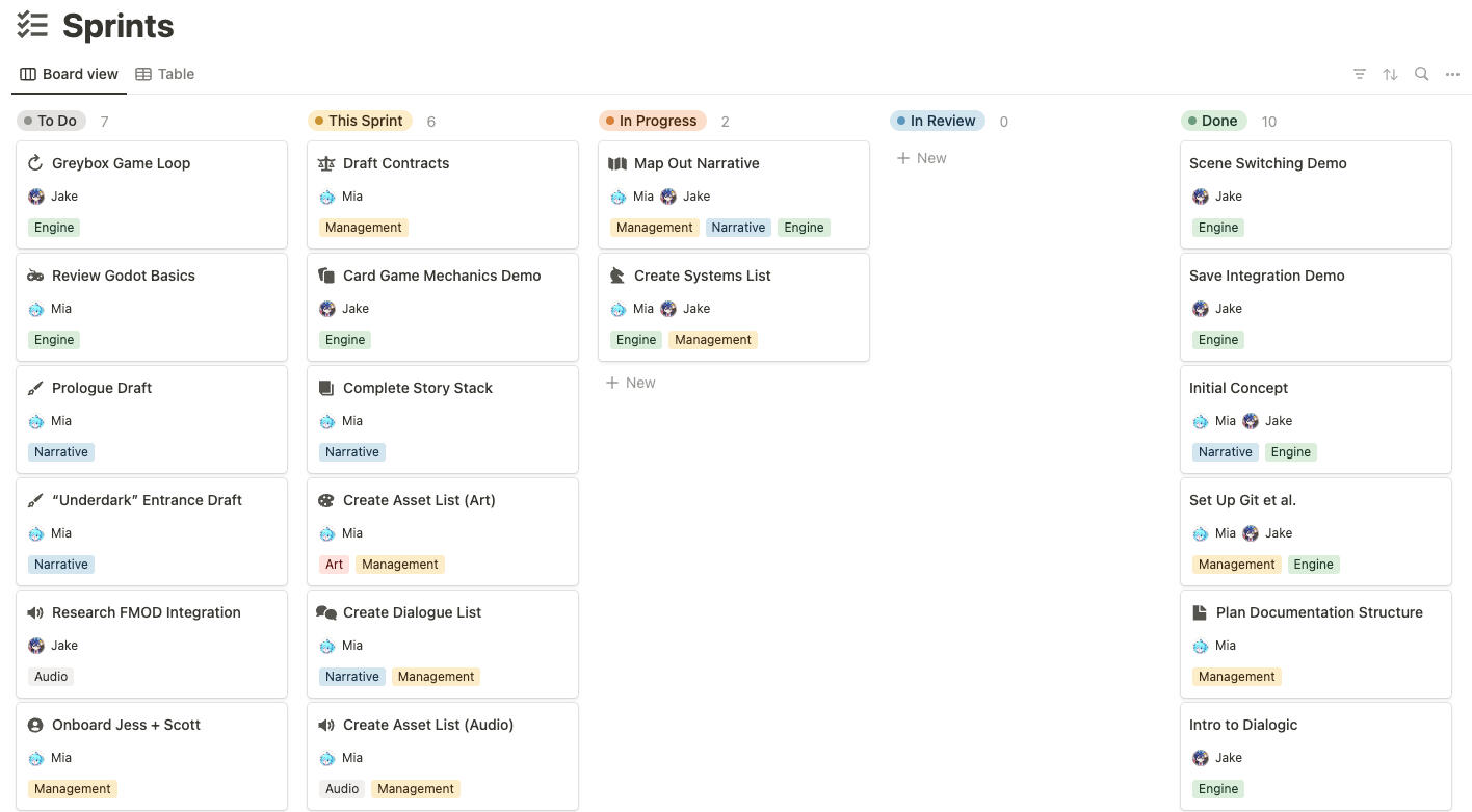 An early snapshot of our Kanban Board, configured in Notion.