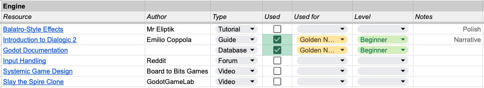 To keep everyone on the same page, I record all of our used (and promising) resources in a spreadsheet that I've organised by department.